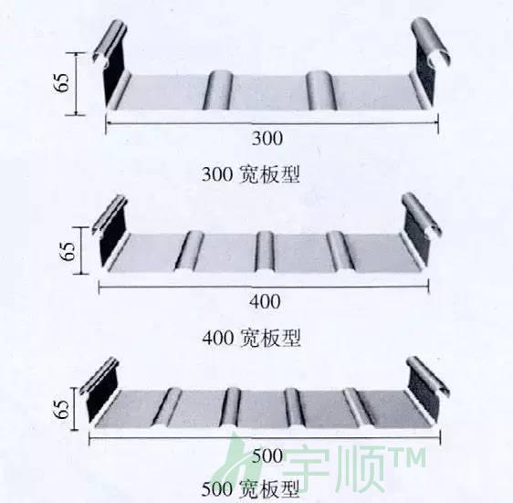 為適應(yīng)建筑屋面的要求,鋁鎂錳合金屋面板在工程應(yīng)用中主要有以下板型。
